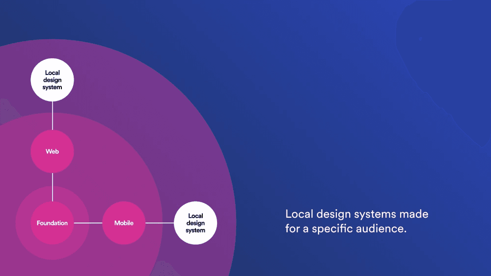 The next layer comprises "local design systems." Local design systems are used to store design elements that are customized for specific audiences and products. These components need to be shared, but not across the entire Spotify.